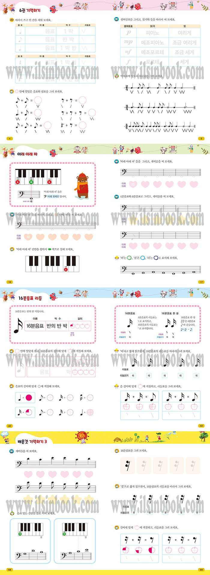 반복 학습을 지루하지 않게 이어갈 수 있도록 구성해 학습 효율을 높였다. 학습 과정에서 성취감을 느낄 수 있도록 [수료증]을 제공하고, 부록 [종이접기]로 학습에 재미를 더했다. 음악이론의 기초를 익히는 데 적합한 입문 교재다.