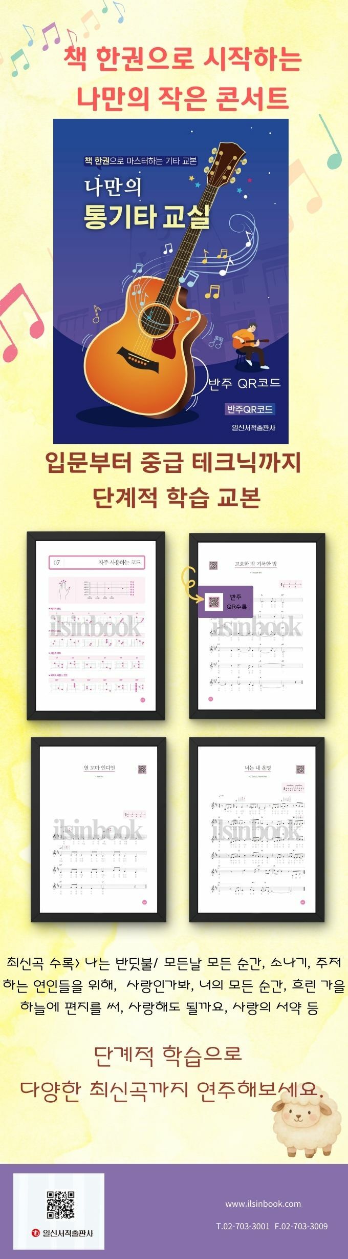 • 통기타를 처음 시작하는 분부터 실력을 한 단계 높이고 싶은 분들까지 모두 아우르는 맞춤형 통기타 교본입니다.