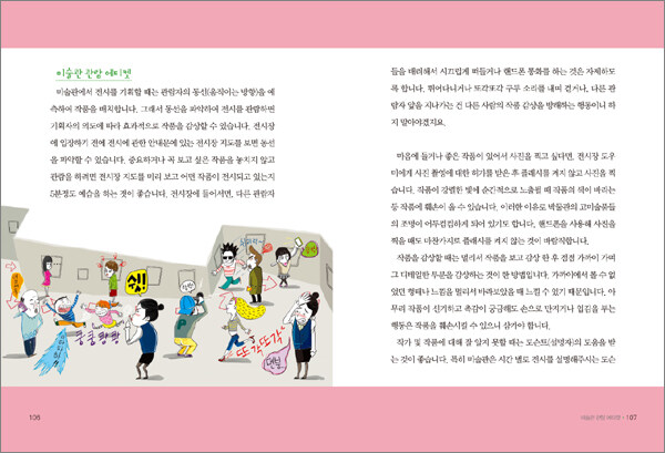 특히 해학적인 그림을 첨부하여 전문가가 아닌 일반인이 쉽게 읽을 수 있다는 점과 동서양 대표적인 세기의 미술 작품 사례를 실제 작품 사진과 더불어 모두 설명한 이 책은 마치, 전문 큐레이터의 설명을 들으며 정말 좋은 미술관을 관람하는 듯한 느낌을 어린이 독자들에게 선사한다.