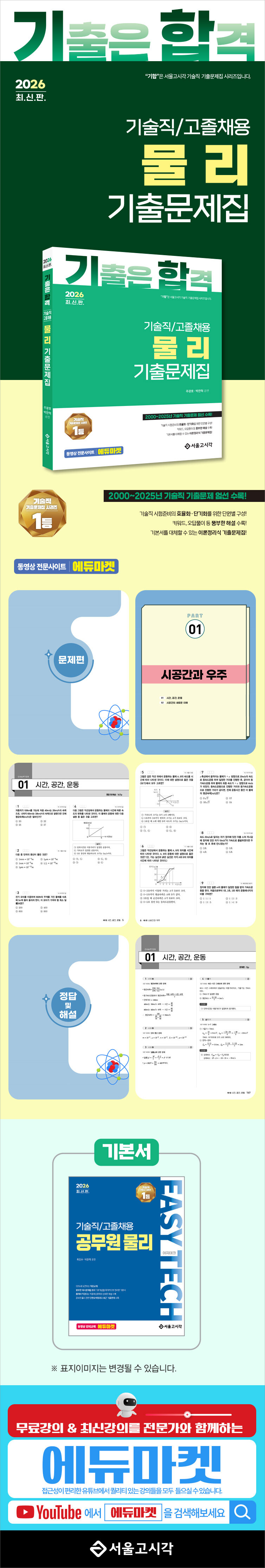 본 교재는 물리학의 폭넓은 출제범위를 수험생들이 적응할 수 있도록 100% 기출문제로 구성되었습니다.