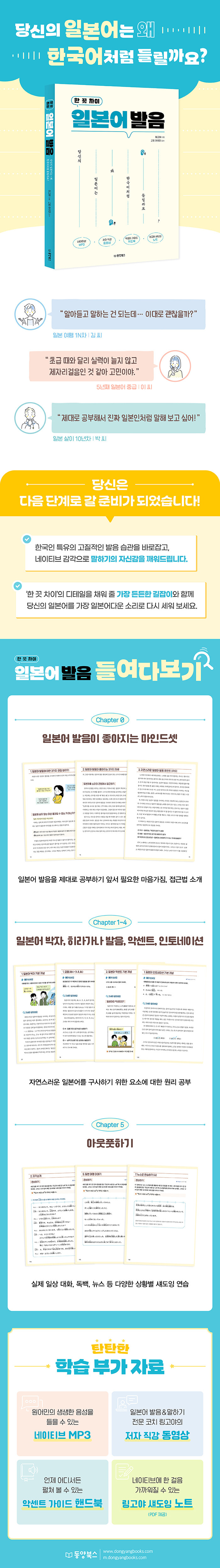 - 저자 직강 동영상: 텍스트만으로는 이해하기 어려운 미세한 입 모양과 조음 위치를 직접 확인하며 학습합니다.