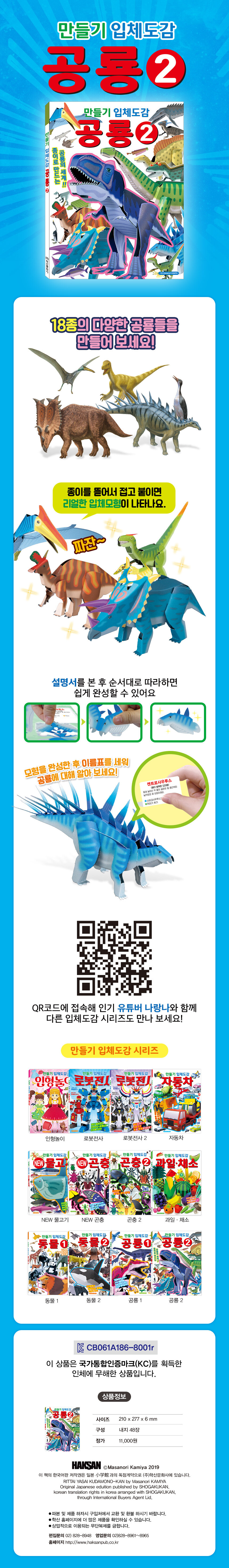 간단하고 재미있는 종이공작. 만들기 입체도감 시리즈 공룡2이다. 뜯어서 접고 붙이면 살아 움직이는 듯 리얼한 입체모양이 완성된다. 한 장 한장 뜯어서 접고 조립하다 보면 내 손에서 멋진 완성품 탄생한다. 만들기를 하면서 손을 정교하게 움직이는 활동은 두뇌가 발달하는 아이들에게 좋다. 만드는 방법을 보고 따라하며 손과 눈의 협응력을 높여 준다. 신기하고 멋진 동물을 만들며 이름표와 함께 나만의 멋진 동물관을 꾸며 보자.