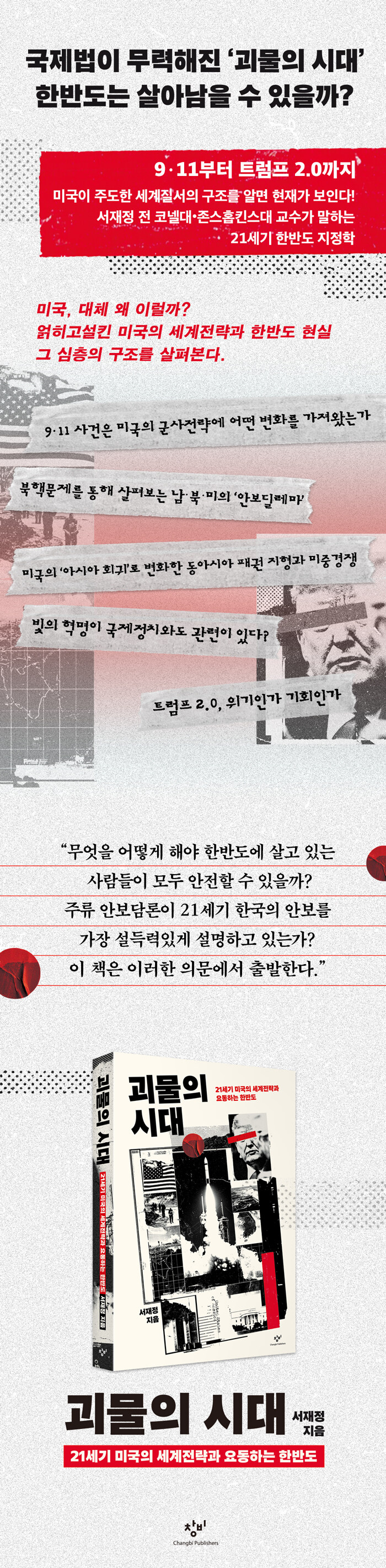 저자는 이 책에서 트럼프 행정부 2.0의 등장을 단순한 위기로만 보지 않는다. 여러모로 불안정하고 불행한 ‘괴물의 시대’이지만 오히려 이를 기존의 안보구도가 강제해온 질서를 흔들고 전환의 가능성을 열어젖힐 기회로도 해석할 수 있다고 말한다. 이때 필요한 것은 위기를 기회로 전환할 수 있는 전략적 상상력일 것이다. 군사력과 억제에 의존하는 ‘힘을 통한 안보’를 넘어, 적대관계를 단계적으로 완화하고 신뢰를 축적해 평화체제로 이행해가는 장기적 구상이 우리에게 절실하다. 이것이 이 ‘괴물의 시대’에 우리가 이 책을 읽고 함께 이야기해야 할 이유다.