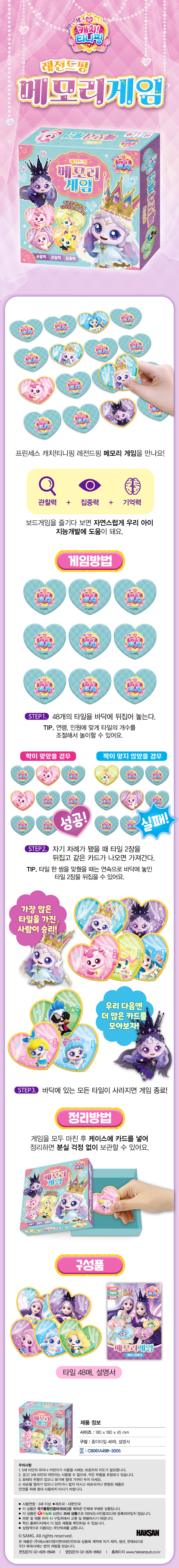여러 명의 친구들과 함께 모여 동일한 그림의 종이타일을 맞추는 게임이다. 게임방법이 단순해서 빠르고 쉽게 즐길 수 있다. 종이타일의 위치를 정확하게 기억하고 있어야 하기 때문에 즐거운 게임을 하면서 기억력과 집중력을 높일 수 있다.