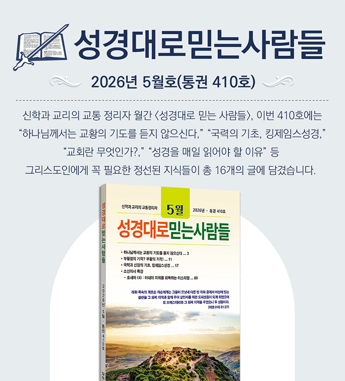<성경대로 믿는 사람들>이 이 땅에 신학과 교리의 교통 정리자로서 그 몫을 다해 줄 것을 기대한다.