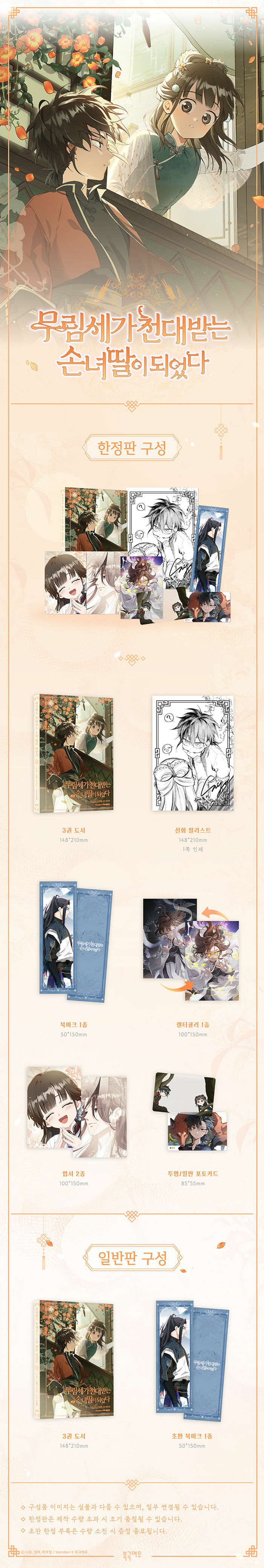 『무림세가 천대받는 손녀 딸이 되었다』 시즌 1 마지막, 단행본 3권 출간!카카오페이지 & 카카오웹툰 누적 조회수 8,200만 『무림세가 천대받는 손녀 딸이 되었다』가 시즌 1의 마지막 단행본으로 돌아왔다. 무협 로맨스의 흥행 공식을 새롭게 써내려가고 있는 이 작품은 마루별 작가의 탄탄한 원작 소설을 바탕으로 제작된 웹툰으로, 시요 작가의 부드럽고 생기 넘치는 작화와 열매 작가의 매끄러운 연출이 더해져 많은 사랑을 받고 있다. 더불어 국내뿐만 아니라 일본, 중국, 태국, 대만, 인도네시아, 북미 등 다수의 해외 국가에서도 론칭되며 K-무협 로맨스 웹툰의 저력을 유감없이 보여주고 있다.