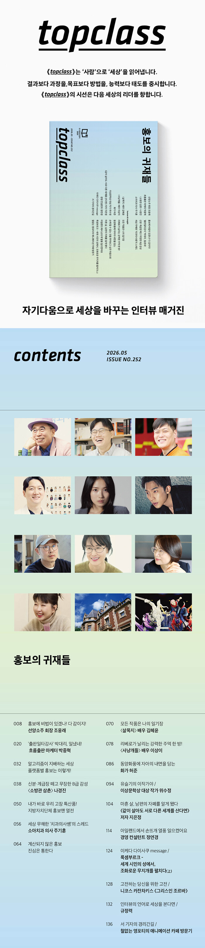 지은이 : 톱클래스 편집부topclass는 '사람'으로 '세상'을 읽어냅니다.결과보다 과정을, 목표보다 방법을, 능력보다 태도를 중시합니다topclass의 시선은 다음 세상의 리더를 향합니다자기다움으로 세상을 바꾸는 인터뷰 매거진
