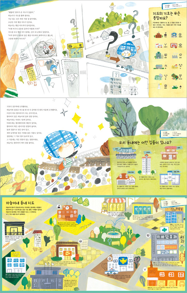 나만의 동네 지도를 만들며 사회를 좀 더 가깝게!책속 부록으로 포함된 ‘하늘이네 동네 지도’를 통해서는 우리가 편안하게 살 수 있도록 돕는 동네의 공공 기관, 병원, 가게들의 역할과 그곳에서는 누가, 어떤 일을 하는지 익힐 수 있다. 그런 뒤, 포스터로 삽입된 ‘우리 동네 지도’에는 자신이 사는 동네의 모습을 떠올려 보며 직접 공공 기관, 병원, 가게들을 오려 붙이며 나만의 동네 지도를 만들 수 있는 활동 페이지를 추가했다. 나만의 동네 지도를 완성하며 어린이들은 내 주변의 사회를 좀 더 가깝게 체험할 수 있을 것이다.