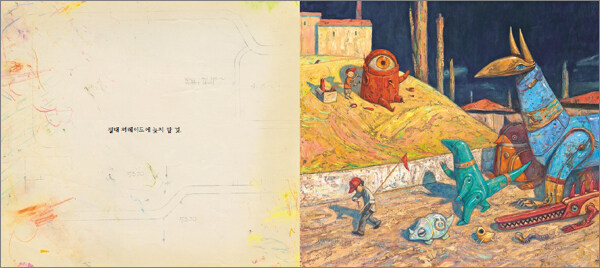 익숙함에서 벗어난 새로운 그림책! 우정, 공포, 모험의 순간들이 정교하게 이미지화돼 있다.