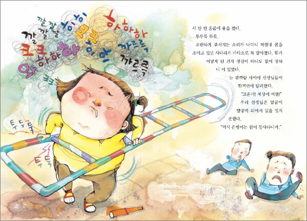 은땡이는 자기가 좋아하는 걸 선택했기 때문에 훌륭한 역도 선수가 되는 과정이 아무리 힘들어도 매일매일 즐거운 마음으로 연습하며 보람차게 보내고 있어요. 자, 그럼 책 속으로 들어가서 은땡이가 구슬땀을 흘리며 열심히 연습하는 모습을 함께 지켜보며 응원해요.