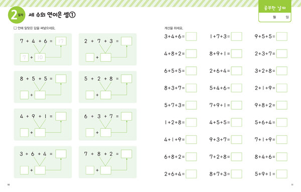 <날마다 10분 계산력>은 매일 조금씩 부담스럽지 않게 진도를 나갈 수 있도록 구성되어 있어요.