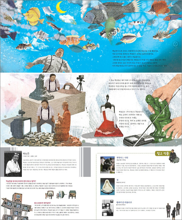 또한, 새로운 예술 분야를 개척해 낸 백남준의 노력을 통해 통념에 얽매이지 않는 열린 사고를 배울 수 있다. 이 책은 유명 작품 「TV부처」에서 영감을 얻어 장면을 구상하였으며, 「TV부처」를 비롯해 「참여TV」, 「TV물고기」, 「다다익선」 등 비디오아트를 이끈 백남준의 다른 걸작들도 함께 만나 볼 수 있다.