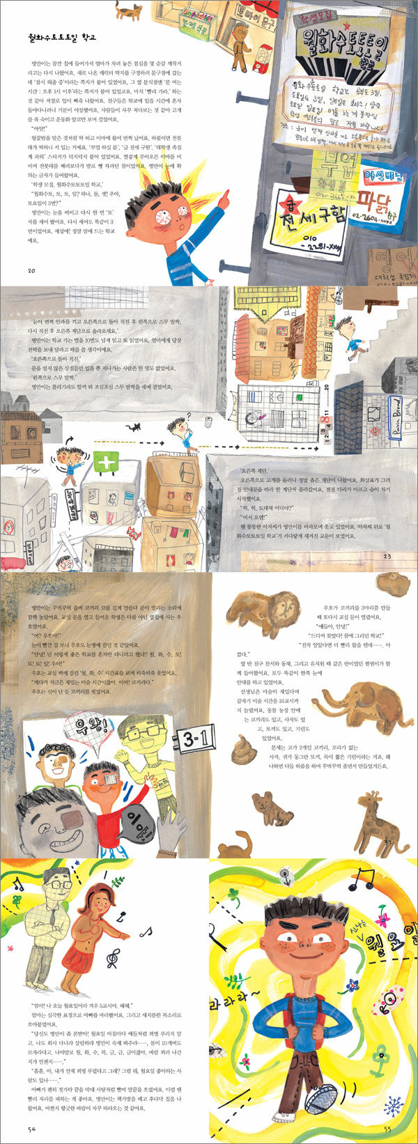 웬 뚱뚱한 아저씨가 병만이를 바라보며 웃고 있었어요. 아저씨 뒤로 ‘월화수토토토일 학교’가 커다랗게 새겨진 교문이 보였어요.