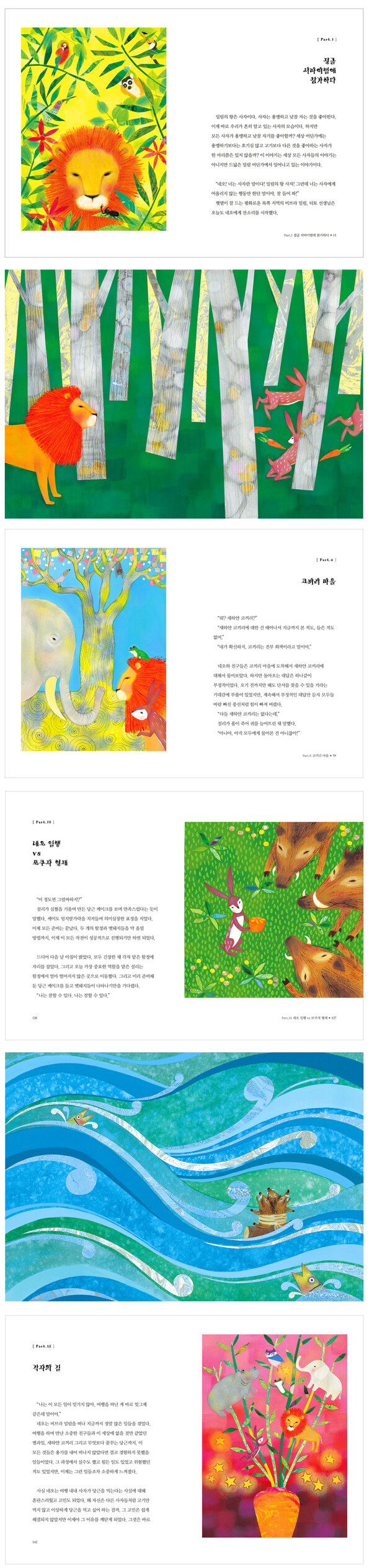 세상의 편견으로부터 자유로운 사자 네오, 미식가 토끼 설리, 용감한 개구리 케이, 별박사 오오루 일행은 망설이기도 하고 고민도 하고 실수도 한다. 하지만, 꿈꾸는 당근을 찾아 설렘을 가득 안고 신 나게 여행을 떠난다. 진정한 행복을 발견하기를 기대하며 우리도 함께 여행을 떠나 보자.