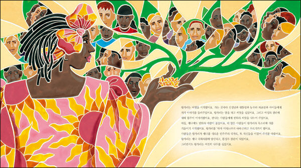 왕가리 마타이를 소개한 다른 어린이책이 독재에 저항하고, 차별을 깨기 위한 활동에 집중했다면, 《세상을 바꾼 씨앗》은 자연을 사랑하고 나무를 심은 그린벨트 운동과 여성 인권에 초점을 맞추었습니다. 무엇보다 아프리카를 닮은 화려한 색감의 그림으로 왕가리 마타이 삶에 푹 빠지도록 하는 아름다운 인물 이야기입니다.