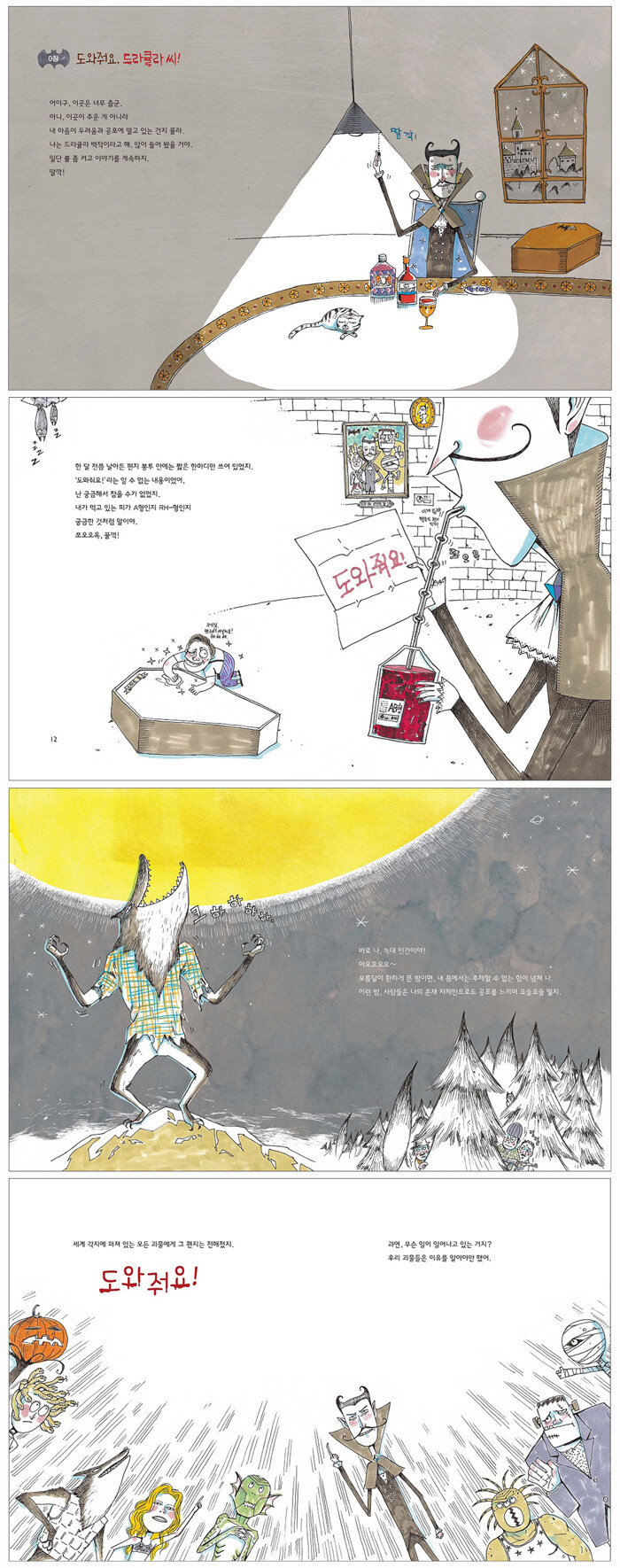 위험에 빠진 처녀 귀신은 이들에게 '도와줘요!'라는 내용의 편지를 보냈고, 괴물들은 각자의 무시무시함을 뽐내며 한국으로 달려왔다. 처녀 귀신의 전 남자 친구이자 스스로 괴물들의 대표라 생각하는 드라큘라는 바로 한국으로 떠났다. 은으로 만든 탄환이 유일한 두려움의 대상이었으나, 방탄조끼를 입음으로써 더 이상 무서울 것 없는 늑대 인간도 보름달이 뜬 날 한국으로 향했다.