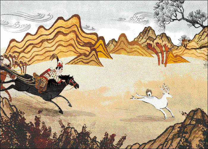 태왕의 명으로 가뭄을 해결하기 위해 사무를 찾아간 왕자 이련은