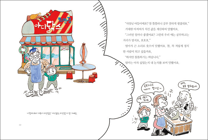 “우리 집은 아디닭스 치킨집 단골이야. 우리 아빠가 너네 집에서 먹은 치킨이 천 마리도 넘을 거라고!”