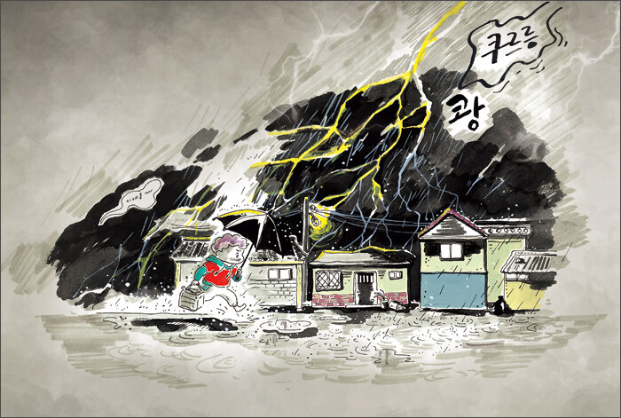 집안에서 신음 소리인지 음악 소리인지 구분이 안 가는 소리가 흘러나왔어요. 순간 등골이 오싹했어요. 나는 재 빨리 돌아섰어요. 빨리 걸으려고 해도 다리가 떨려 제대로 걸을 수가 없었어요. 그때였어요.