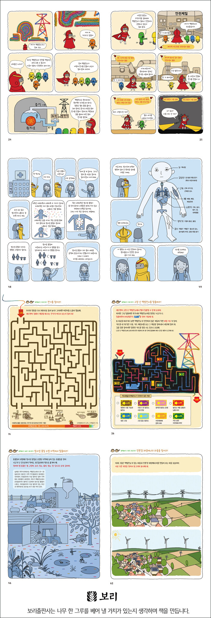 편마다 만화가 끝난 뒤 미로 찾기, 틀린 그림 찾기, 그림 그리기 같은 ‘탈핵 놀이’가 열여섯 편이 마련되어 있어서, 만화에서 알 수 있었던 핵발전의 진실을 놀이를 통해 아이들 스스로 한번 더 생각해 볼 수 있다.