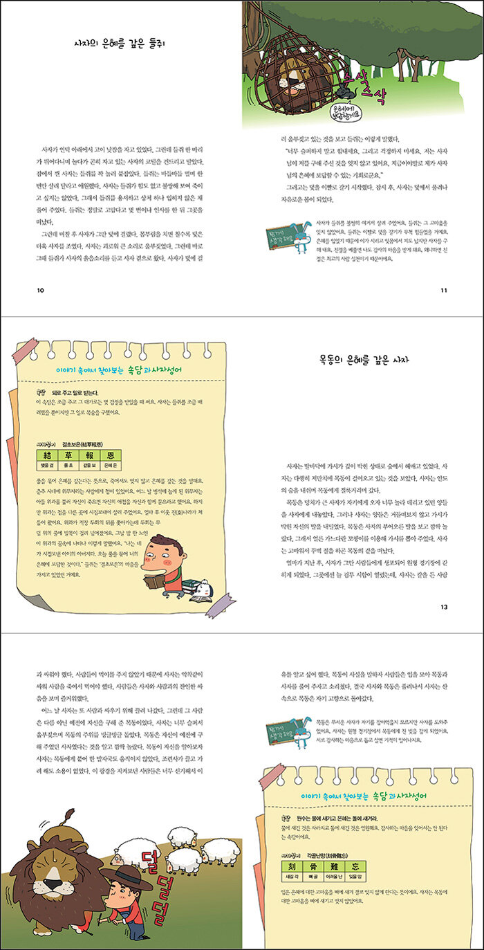 이 책에서는 이솝 우화를 더욱 깊이 읽기 위해 이야기의 주제를 분류하고 속담과 사자성어로 한 번 더 의미를 생각해 볼 수 있도록 했다. 속담이란 예로부터 전해지는 조상들의 지혜가 담긴 표현을 말하는데 직접적으로 의미를 전달하기보다는 비유적으로 깊은 뜻을 표현하는 특징이 있다. 사자성어 역시 한자 네 자로 이루어진 말로 깊은 교훈을 담고 있다. 속담과 사자성어는 국어 실력의 밑거름이 될 뿐 아니라 다른 과목에 대한 이해력을 키워 준다. 하지만 속담이나 사자성어는 어린이들이 이해하는데 많은 어려움이 있다. 이 책에선 어려운 내용을 쉽게 이해하고 오랫동안 기억에 남게 하기 위해 속담과 사자성어 속에 담긴 배경도 함께 수록하면서 이솝 우화의 내용과 견주어 설명도 곁들어 놓았다. 교과연계로 꾸며졌으며 부록엔 속담과 사자성어를 다시 한 번 재미있게 공부해 볼 수 있도록 다양한 문제들을 수록했다.