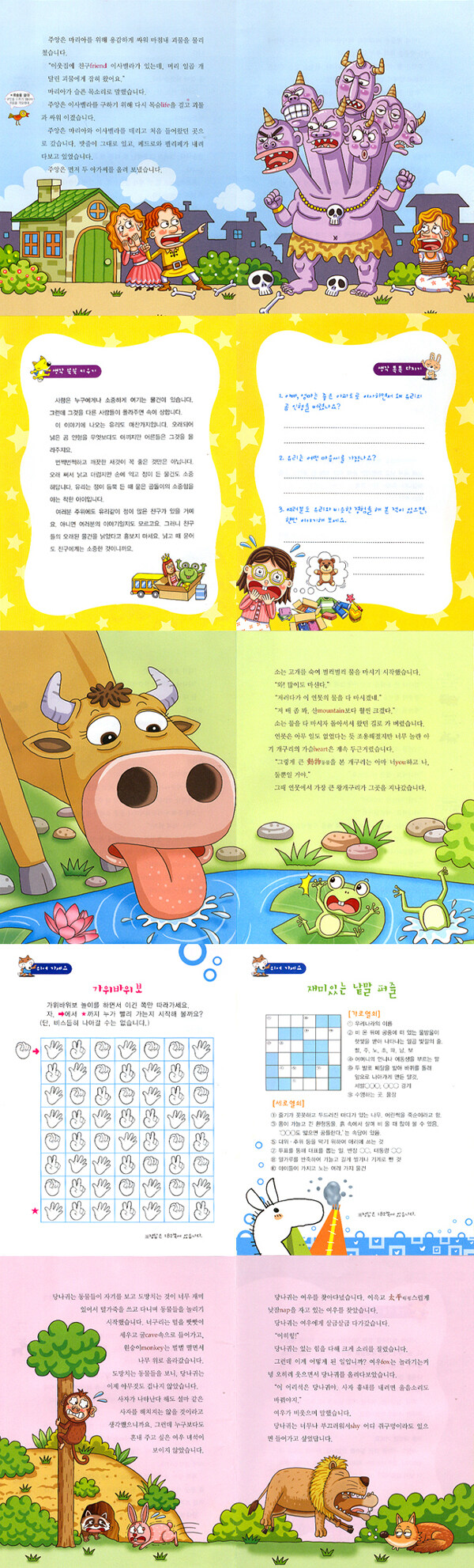 - 곳곳에 숨어 있는 알쏭달쏭 퀴즈, 낱말 퍼즐, 성냥개비 퍼즐 등을 게임하듯 즐겁게 풀어보세요. 사고력과 어휘력이 쑥쑥 자라나요.