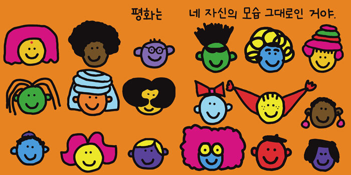 토드 파는 ‘나’에서 ‘우리’로 평화 개념의 적용 범위를 넓힌다. ‘친구를 안아 주는 것’ ‘이웃을 돕는 것’도 평화라고 말이다. 작가는 여기에서 멈추지 않고 범위를 다른 집단으로까지 확장한다. ‘다른 (문화권의) 옷을 입어 보는 것’ ‘다른 종류의 음악을 듣는 것’ ‘다른 말을 배워 보는 것’ 또한 평화다. 여기서 토드 파의 평화 감각이 엿보인다. 우리가 그렇게 해야 한다고 배우지만 잘 지켜지지 않는 핵심적인 한 가지. 수많은 갈등을 낳는 근본적인 해결 방법 중 주요한 한 가지가, 타인이나 타 집단을 이해하려 노력하고 차이를 인정하는 일일 테다.