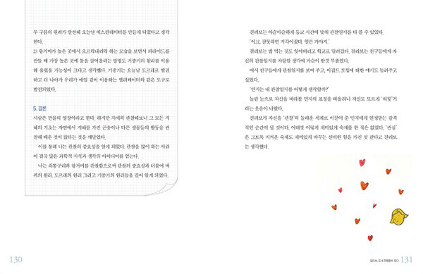 관찰에서 가장 중요한 것은 인내와 끈기이다. 오스트리아의 카를 폰 프리슈는 꿀벌의 언어를 연구해 노벨상을 받은 동물학자이다. 카를 폰 프리슈는 ‘나는 능력이 뛰어난 것이 아니고 단지 움직임 없이 돌 틈 사이에 몇 시간을 누운 채로 생물을 끈질기게 관찰했을 뿐이다’라고 말하며, 꿀벌들의 언어를 어떻게 관찰했는지 그 비결을 알려줬다. 국어, 영어, 수학을 잘 하는 것도 중요하지만, 진짜 공부는 남들이 알지 못하는 것을 먼저 발견하는 힘이다. 그리고 그런 발견의 힌트들은 지금 이 순간 바로 우리 옆에 숨어 있다. 숨어 있는 힌트들을 찾아내려면 끈질기게 관찰하는 자세가 필요하다.