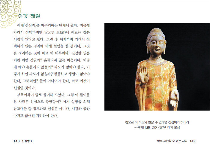 - 한산 화엄(寒山華嚴)선사를 은사로 득도- 화엄, 향곡, 성철, 경봉, 해산, 탄허, 석암 큰스님들로부터 선(禪), 교(敎), 율(律)을 지도 받으며 수행- 중앙승가대학교에서 5년에 걸쳐 팔만대장경을 일람(一覽)- BBS 불교라디오방송 ‘자비의 전화’ 진행- BTN 불교TV방송 ‘송강 스님의 기초교리 강좌’ 진행- 불교신문 ‘송강 스님의 백문백답’ 연재- 불교신문 ‘송강 스님의 마음으로 보기’ 연재-『금강반야바라밀경 시리즈』, 『송강 스님의 백문백답』, 『송강 스님의 인도 성지 순례』 , 『송강스님의 미얀마 성지순례』『경허선사 깨달음의 노래(悟道歌)』 , 『송강스님이 완전히 새롭게 쓴 부처님의 생애』『초발심자경문』출간- 서울 강서구 개화산(開花山) 개화사(開華寺)를 창건- 현재 개화사 주지로 있으며, 인연 닿는 이들이 본래면목을 깨달을 수 있도록 기초교리로부터 선어록에 이르기까지 다양한 강좌를 진행하고 있으며, 차, 향, 음악, 정좌, 정념 등을 활용한 법회들을 통해 마음 치유와 수행을 지도하고 있음