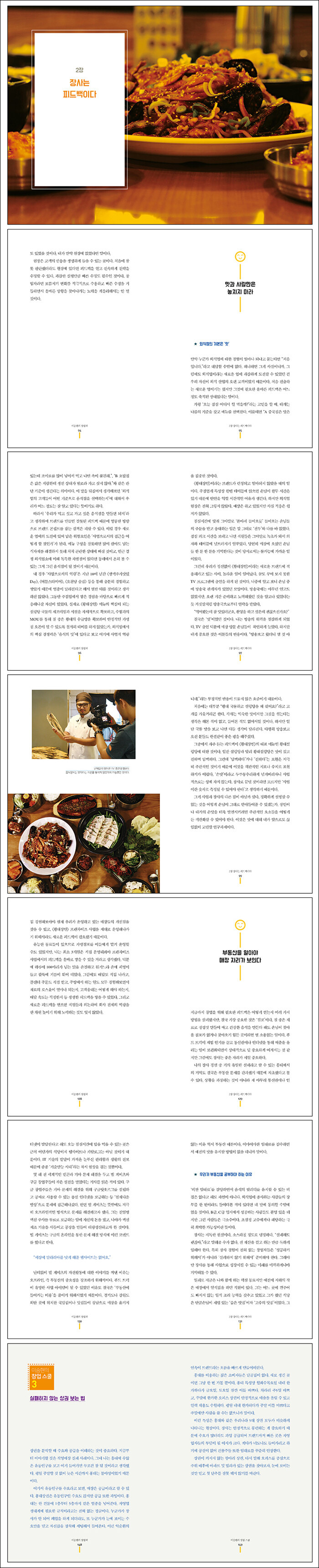 그리고 저자는 자신이 경험하고 깨달은 것들을 혼자만의 성공으로 만족하지 않고, 외식업으로 장사를 시작하려는 예비창업자들이나 장사가 어려워 힘들어하고 있는 자영업자들에게 도움이 되기를 바라는 마음에서 장사의 비법과 사업의 전략들을 이 책을 통해 하나하나 공개한다.