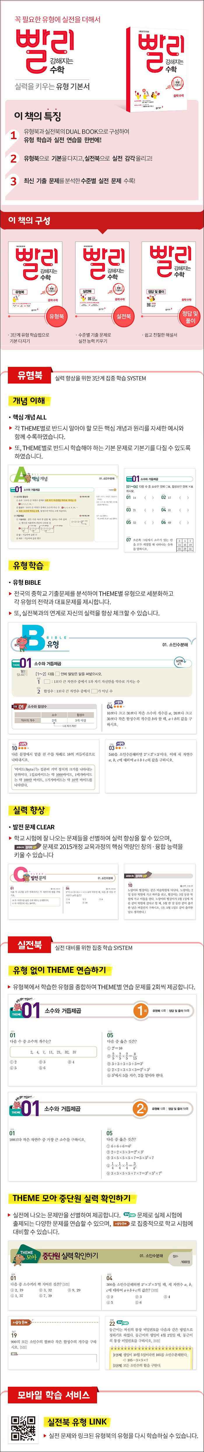 THEME별로 유형 구분이 없는 실전 연습 문제를 수준별로 2회씩 제공하여 유형 학습을 마친 후에 실전 감각을 익히고 수학 실력을 점검할 수 있습니다.