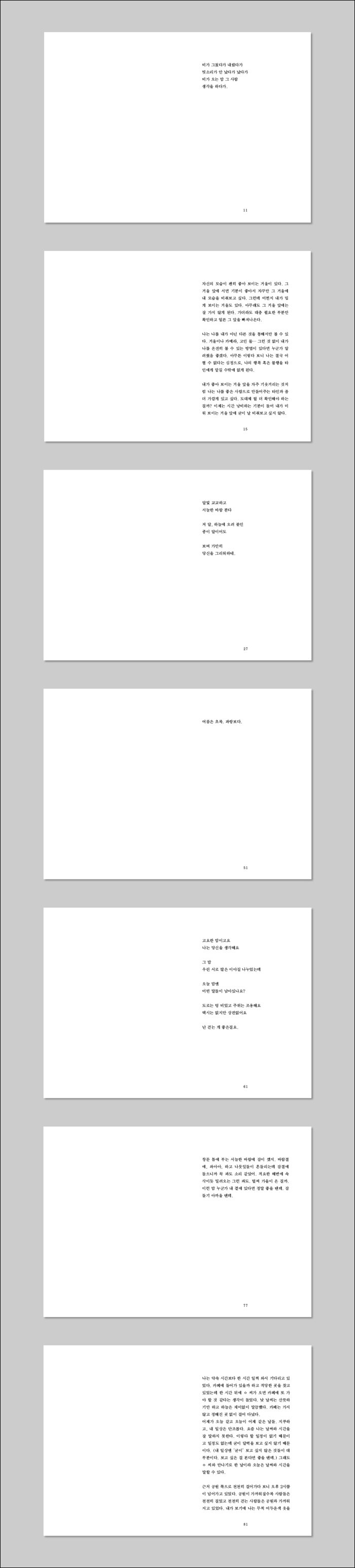 청춘문고 시리즈 13권. 독특한 책 형태와 그 안에서 느껴지는 손길의 따스함, 감성적인 글이 어우러진 가내수공 독립출판물로 독립출판계에서 주목받은 김종완의 글을 모은 책이다. 6년 동안 꾸준히 소설을 써온 저자는 건조한 문체로 외롭고 쓸쓸한 감성을 군더더기 없이, 그러나 진솔하게 독자에게 전달한다.