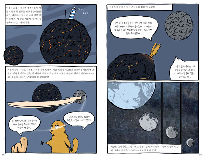 역사학과 지질학을 전공한 저자들이 놀랄 만큼 쉽고 생생하게 들려주는 지구의 역사이 책은 아이들에게 익숙한 그래픽 노블(만화)에, 주인공인 마멋과 지렁이가 대화를 주고받는 형식으로 구성되어, 딱딱하다고 여겨지는 지구의 역사, 지구과학을 쉽고 재미있게 들려준다. 또한 아이들에게 낯설 수 있는 다양한 용어와 개념, 현상과 과정 등을 아이들의 눈높이에 맞춰 쓴 글과 사실적인 그림은 지구의 역사를 이해하는 데 크게 도움을 줄 것이다.