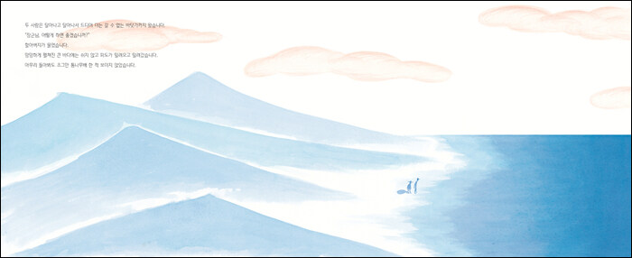 간결하고 예술성이 풍부한 그림책의 아름다움 화가 이성표는 30년 넘게 어린이책에 그림을 그리고 그림책 작가로 살아왔다. ‘일러스트레이션은 한 인간의 내면의 울림’이라고 말해 온 그는 그동안 이야기의 핵심을 간결하고 부드러운 자신만의 그림 언어로 표현해 왔다. 그는 『장군님과 농부』에서 인간 세상을 ‘고해’(苦海)에 비유하는 것을 떠올리고, 전쟁을 피해 달아나는 불안한 두 인물의 모습을 파도가 쉼 없이 치는 바다의 이미지로 변주하여 보여 준다. 고요한 물속에서 터벅터벅 걸어 나오는 장군의 이미지로 시작하여 도망치는 장군과 농부 앞에 펼쳐진 망망한 바다, 매서운 대포 소리가 울리는 바다, 바람이 불고 비가 내리는 밤바다 등 때로는 잔잔하게 때로는 거칠게 바다 물결을 표현하여 이야기의 풍부한 감상을 선사한다. 거대한 자연 앞에 보잘것없는 작은 인간이 대비되는 장면들은 화가의 해석을 통해 권정생 동화를 새롭게 읽을 수 있는 대목이 될 것이다.