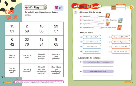 6) Let's Do It At Home: 숙제를 하거나 수업시간에 복습용으로 활용할 수 있는 평가문제가 듣기와 쓰기로 구성되어 있다.