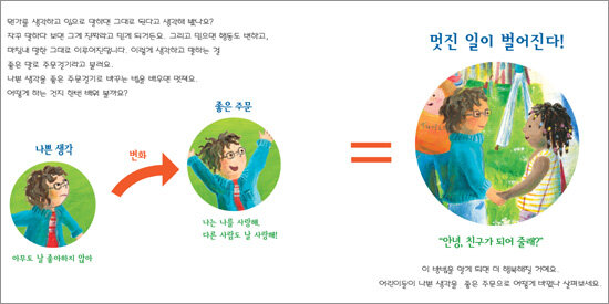 이런 간단한 방법 외에도 어린이들은 자신이 외톨이라고 생각할 때, 욕심이 지나칠 때, 실수를 했을 때 등 어떤 부정적인 경험을 앞에 두고서 작은 생각의 변화를 이끌어 내어봄으로써 긍정적인 생각 그리고 마침내 행동의 변화에 이르게 되는 체험을 할 수 있다.