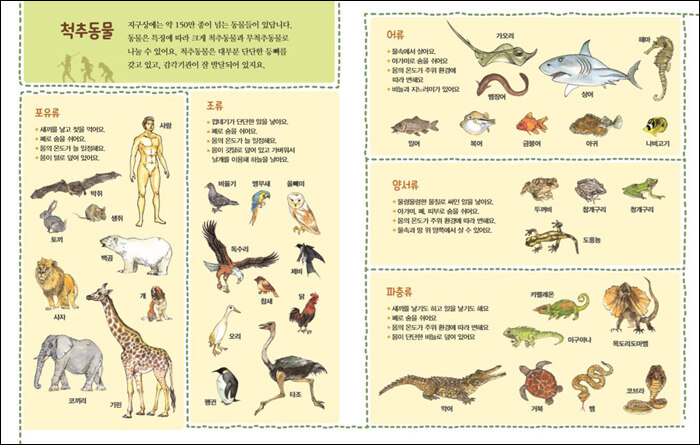 그마마도 잘못 알거나 잘 모르는 것도 많고요. 권오길 박사님은 동물이란 무엇일까부터 분류, 사는 곳, 먹이, 그리고 자손을 남기고 살아가는 방법까지 차근차근 알려줍니다. 그야말로 친절한 과학 교과서라고 할 수 있지요. 읽다보면 모르는 이야기도 알게 되고, 작은 벌레, 날아가는 새도 다시 한번 관찰하게 된답니다.