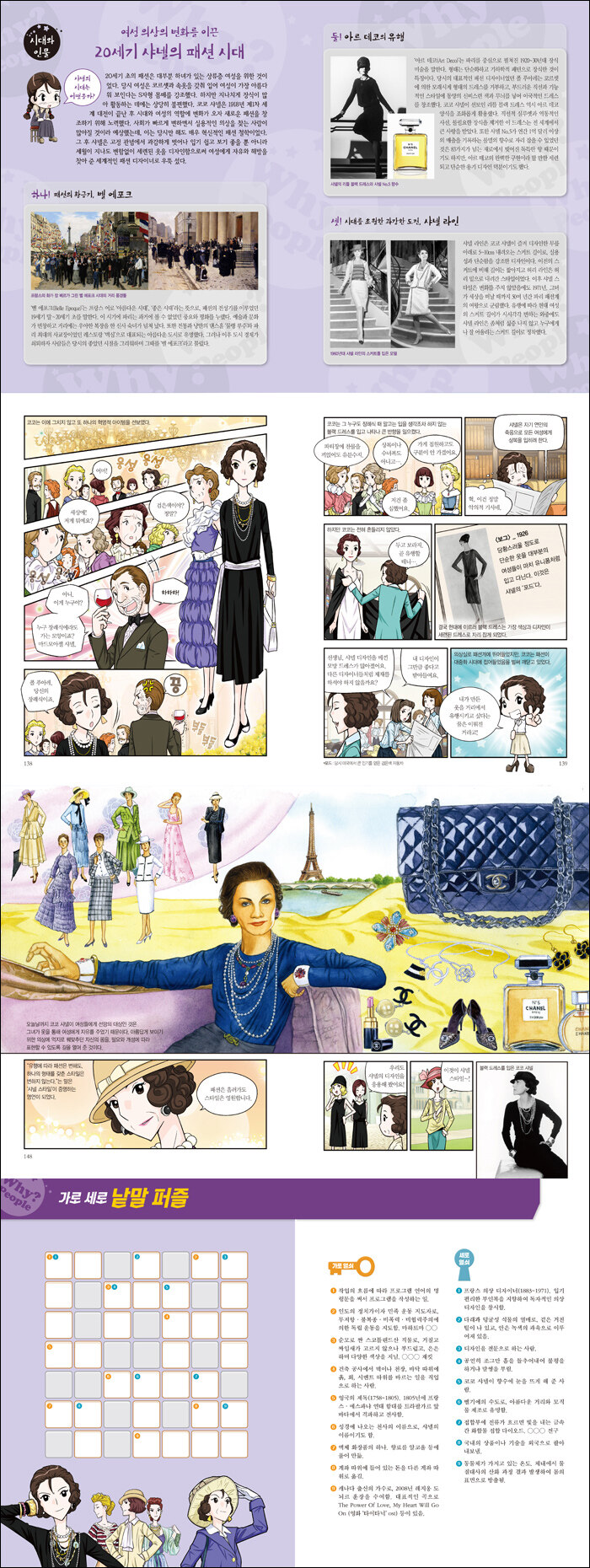 Why? 인물탐구학습만화 시리즈. 여성 의상에 혁신을 일으킨 20세기 최고의 디자이너, 코코 샤넬의 삶 속으로 들어가 본다. 화려한 장식이 없는 가볍고 세련된 샤넬의 디자인은 많은 사람의 사랑을 받았고, 이에 힘입어 의상 디자인도 시작했다. 코르셋과 긴 드레스로 몸을 옥죄던 당시의 스타일에서 벗어나 헐렁하고 단순한 형태의 의상을 만들기 시작했다.