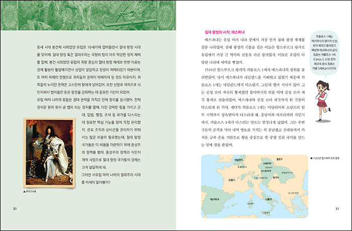 절대 왕정의 시작, 에스파냐 | 영국 절대 왕정의 시작 | 영국 절대 왕정의 문을 연 헨리 8세 | 영국 절대주의의 절정, 엘리자베스 1세 | 프랑스 절대 왕정의 시작, 프랑수아 1세 | 프랑스 절대주의의 절정, 루이 14세