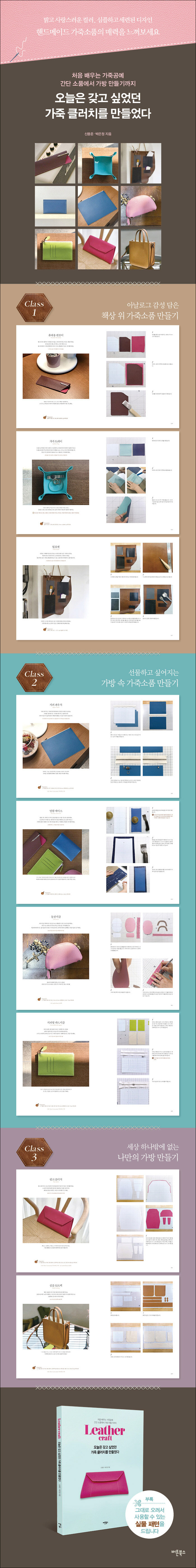 처음 시작하는 사람들이 쉽게 따라서 만들 수 있는 가죽소품 아이템을 골랐으며, 크고 정확한 사진과 과정 설명으로 친절하게 알려준다. 가죽공예의 기초 과정을 마치고 나면 문구와 간단 소품을 만들 수 있고, 자신감이 조금 붙고 나면 갖고 싶었던 클러치와 토트백에 도전할 수 있다.