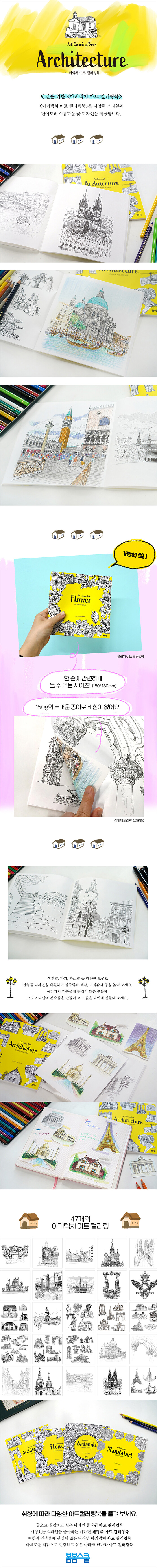 아트 컬러링북 시리즈. 47가지 다양한 스타일의 세계 건축물을 다양한 작가가 펜화로 컬러링의 원화를 그렸으며 세계 건축물 디자인을 제공하고 보다 정교한 명암을 흑백으로 표현하여 단순한 색상을 칠하기만 해도 오랜 시간을 들이지 않아도 완성도 높은 결과물을 만들어 낼 수 있게 구성했다.