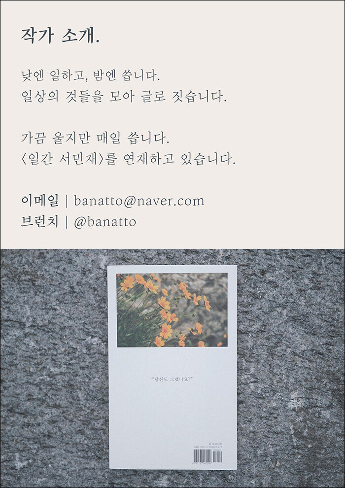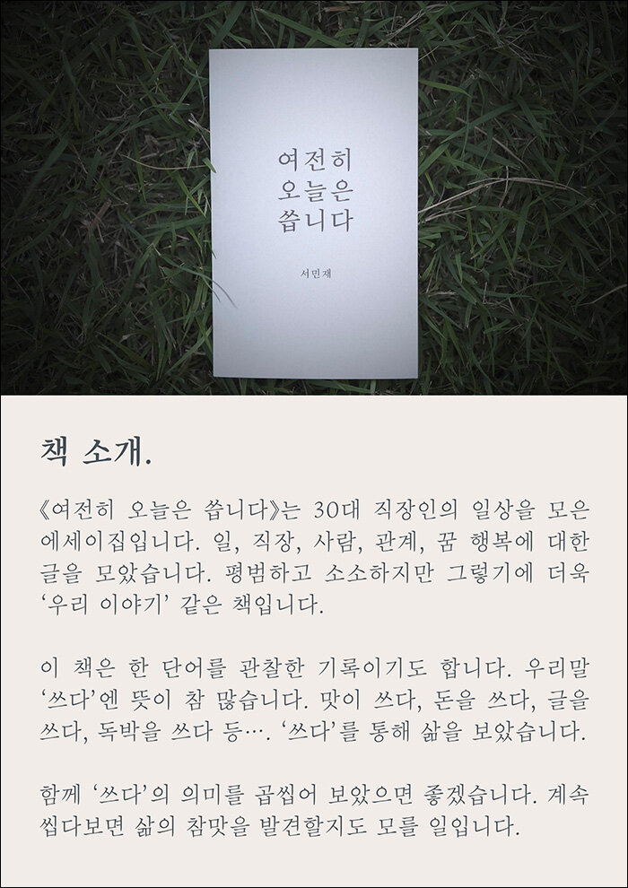 낮엔 일하고, 밤엔 씁니다. 일상의 것들을 모아 글로 짓습니다.가끔 울지만 매일 씁니다. 브런치에 <일간 서민재>를 연재하고 있습니다.