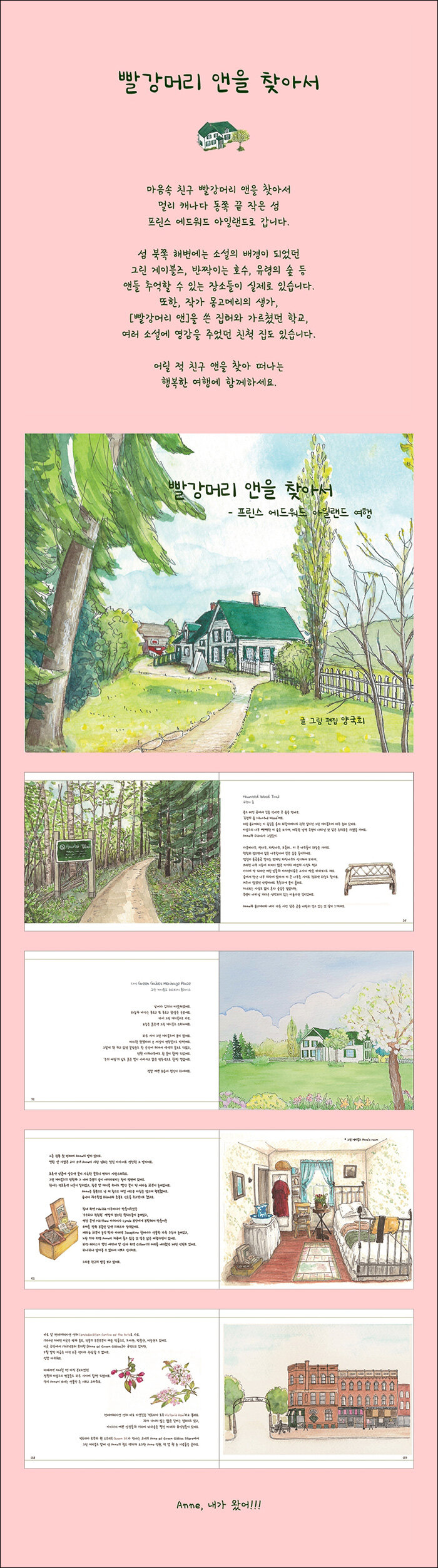 [빨강머리 앤]의 배경인 그린 게이블즈가 있는 프린스 에드워드 아일랜드에 다녀온 여행의 기록과 그곳을 그린 그림들을 엮은 책이다. 캐나다 동쪽 끝 작은 섬 프린스 에드워드 아일랜드의 북쪽 해변에는 소설의 배경이 되었던 그린 게이블즈, 유령의 숲, 반짝이는 호수 등 Anne을 추억할 수 있는 장소들이 실제로 곳곳에 존재하고 있다.