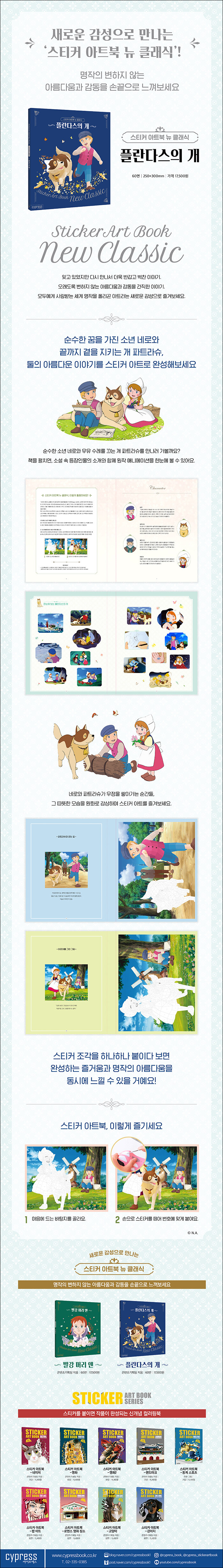 명작의 변하지 않는 아름다움과 감동을 손끝으로 느껴보세요‘스티커 아트북 뉴 클래식’! 새로운 감성의 스티커 아트북이 출간되었다. 잊고 있었지만 다시 만나서 더욱 반갑고 벅찬 이야기, 오래도록 변하지 않는 아름다움과 감동을 간직한 이야기. ‘스티커 아트북 뉴 클래식’은 모두에게 사랑받는 세계 명작을 폴리곤 아트라는 현대적인 감각으로 재탄생시킨 시리즈다. 두 번째로 선보이는 타이틀은 슬프지만 아름다운 결말이 인상적인 『플란다스의 개』이다.