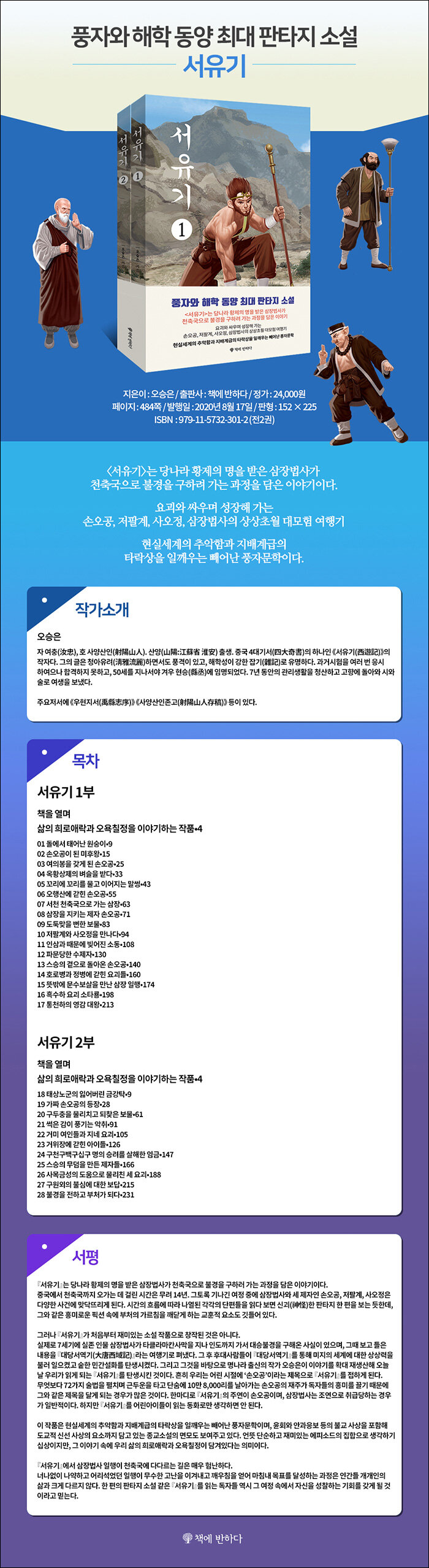 『서유기』에서 삼장법사 일행이 천축국에 다다르는 길은 매우 험난하다. 너나없이 나약하고 어리석었던 일행이 무수한 고난을 이겨내고 깨우침을 얻어 마침내 목표를 달성하는 과정은 인간들 개개인의 삶과 크게 다르지 않다. 한 편의 판타지 소설 같은 『서유기』를 읽는 독자들 역시 그 여정 속에서 자신을 성찰하는 기회를 갖게 될 것이라고 믿는다.
