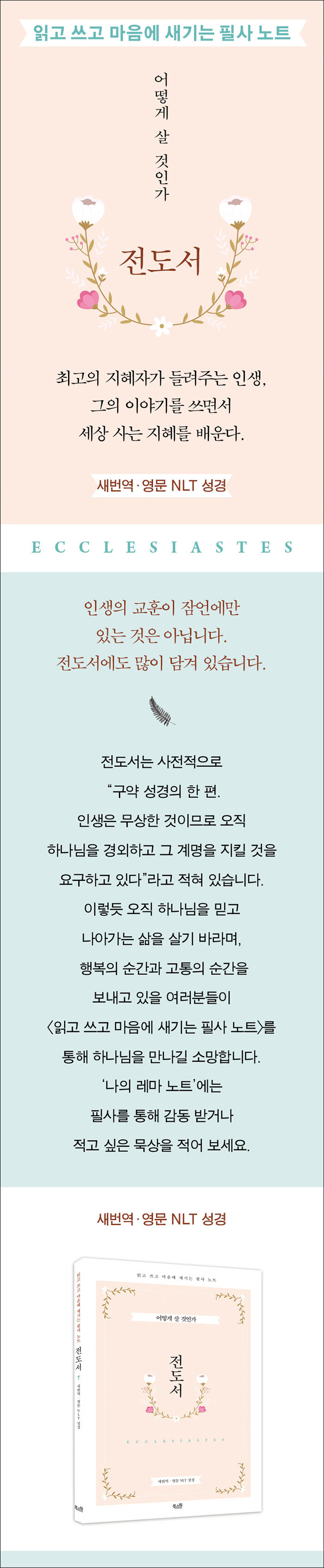 그가 들려주는 지혜는 단순하고 명료하다. 우리가 살아가는 방식을 이야기 할 때도 많으니 말이다. 전도서를 필사하면서 지혜자의 삶의 방식을 만나고 나의 삶의 길도 찾길 바란다.