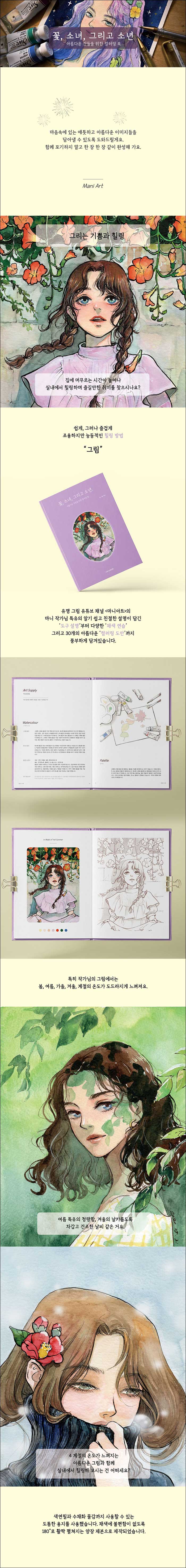 - 마니 | Mani Art, 마니아트『꽃, 소녀, 그리고 소년』은 다수의 구독자를 보유한 유명 그림 유튜브 채널 '마니아트'의 마니 작가님과 함께합니다. “함께 포기하지 말고 한 장 한 장 같이 완성해 가요”라는 작가님의 말씀에서 알 수 있듯, 특유의 알기 쉽고 친절한 설명이 담긴 ‘도구 설명’부터 다양한 ‘채색 연습’ 그리고 30개의 아름다운 ‘컬러링 도안’까지 풍부하게 담겨있습니다.