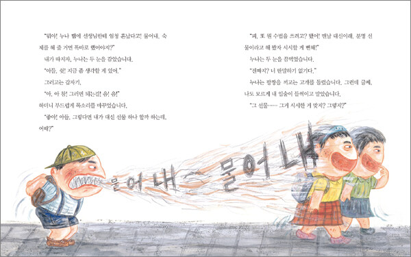 책 읽기의 즐거움을 한 층 더해 주는 유쾌한 그림화가는 영악한 듯 보이지만 결국 제 꾀에 넘어가는 누나와 누나에게 잘 속지만 순간순간 기지를 발휘하는 남동생의 모습을 특유의 익살스러운 그림으로 표현했다. 아이들의 천진난만함까지 배어나 있는 그림은 말썽꾸러기 아이들이지만 결코 미워할 수 없게 만든다. 또 어른들의 시각으로 보기에는 별일 아닌 일로 땅이 꺼져라 한숨을 쉬며 고민하다가도, 작은 일에 금세 기뻐하고 행복해하는 누나와 남동생의 모습을 과장된 표현으로 유머러스하게 보여준다. 화가는 그 유머 속에 아이들의 절실함과 기쁨 등 다양한 감정을 빼놓지 않고 전달하고 있다. 깔깔 웃음이 새어 나오는 재치 있는 그림은 이 책을 읽는 즐거움을 한 층 더해 준다.