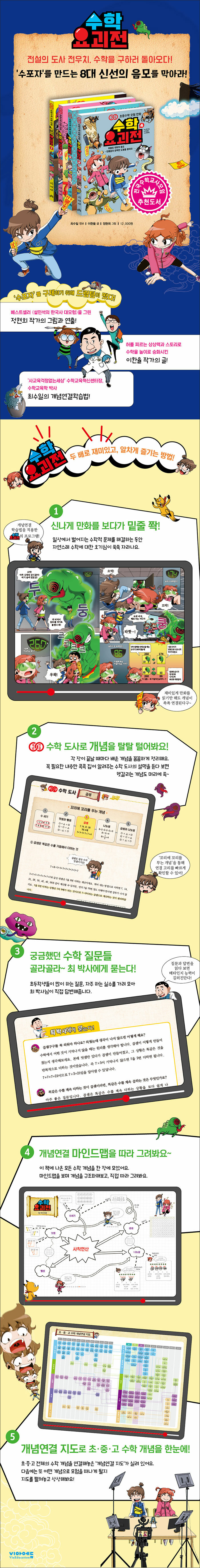 ① 신나게 만화를 보다가 밑줄 쫙!수학요괴를 퇴치하고 수학을 지키기 위해 수학 도사가 나섰다! 우치와 보윤이를 따라 흥미진진 모험을 즐기다 보면 어느덧 성큼 다가온 수학을 만날 수 있다. 일상에서 벌어질 수 있는 수학적 문제를 해결하는 동안 자연스레 수학에 대한 호기심이 쑥쑥 자라난다.
