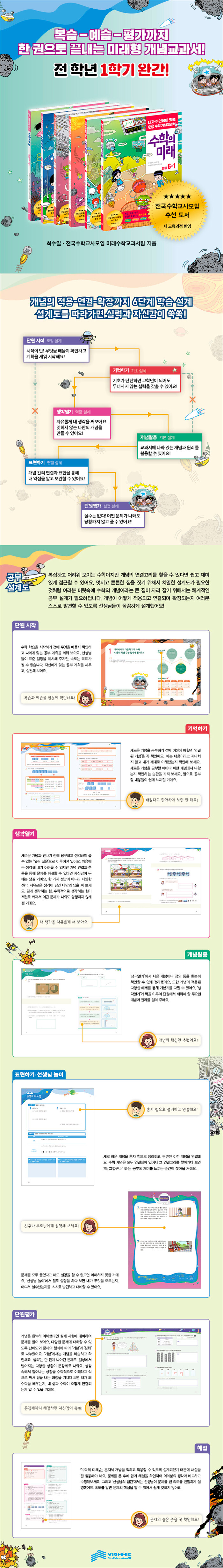 『수학의 미래』는 수학 개념을 외우고 문제를 푸는 단순한 학습서가 아니다. 학생들은 여기서 새로운 수학 개념을 발견하고 연결하는 주인공 역할을 해야 한다. 그렇게 발견한 수학 개념을 주변 사람들에게나 자신에게 항상 소리 내어 설명할 수 있어야 한다. 설명하는 표현학습을 통해 수학 지식은 선생님의 것이나 교과서 속에 있는 것이 아니라 학생의 것이 된다. 『수학의 미래』는 모든 학생들이 수학적 역량을 키워 사회에 공헌할 수 있는 인격체로 성장할 수 있게 도와줄 것이다.